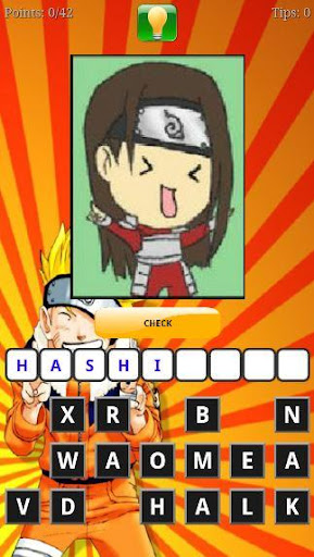 Guess The Naruto Character Let's see all the people who come on top 10! Test your knowledge on this television quiz and compare your score to others. Guess the character of naruto, it is a fun game in which you will have to guess the name of the characters of this beautiful anime, between what you will to play to guess the character naruto, you must press in order the letters that appear under each image, and thus to write the name correctly. Why not try putting it to the test in this guess the naruto character brain game that you'll seriously need some help answering.